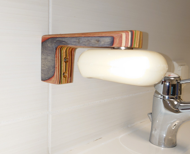 Seifenstück wird mit einem Magnet am Halter gehalten.